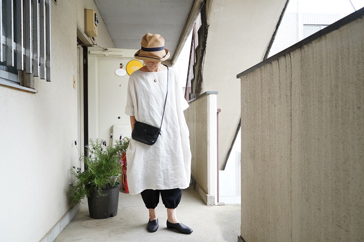 あわせて、裾はキュッと絞った状態にしています。